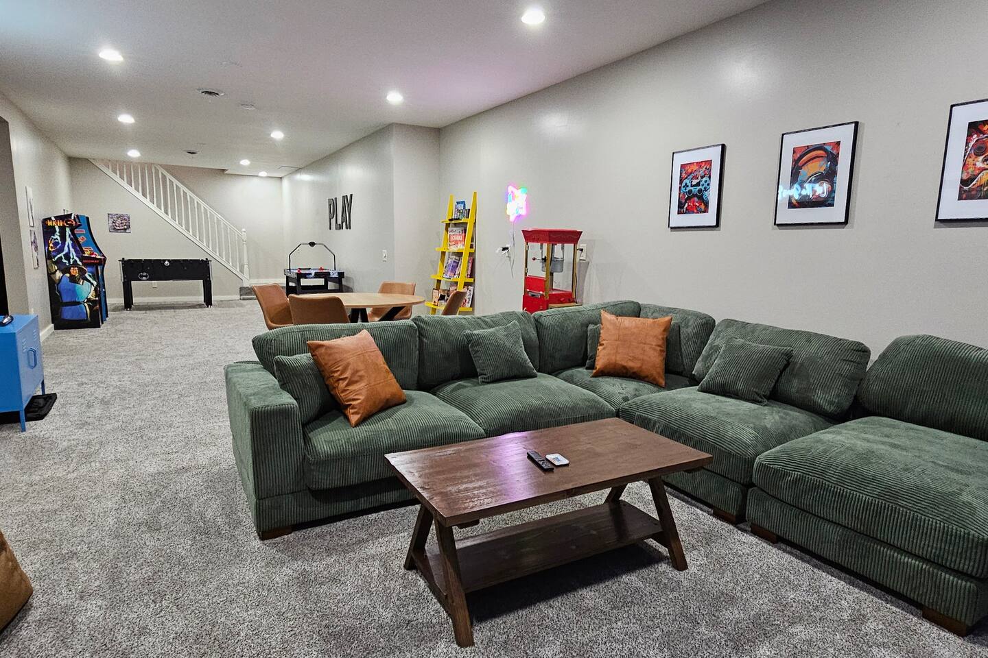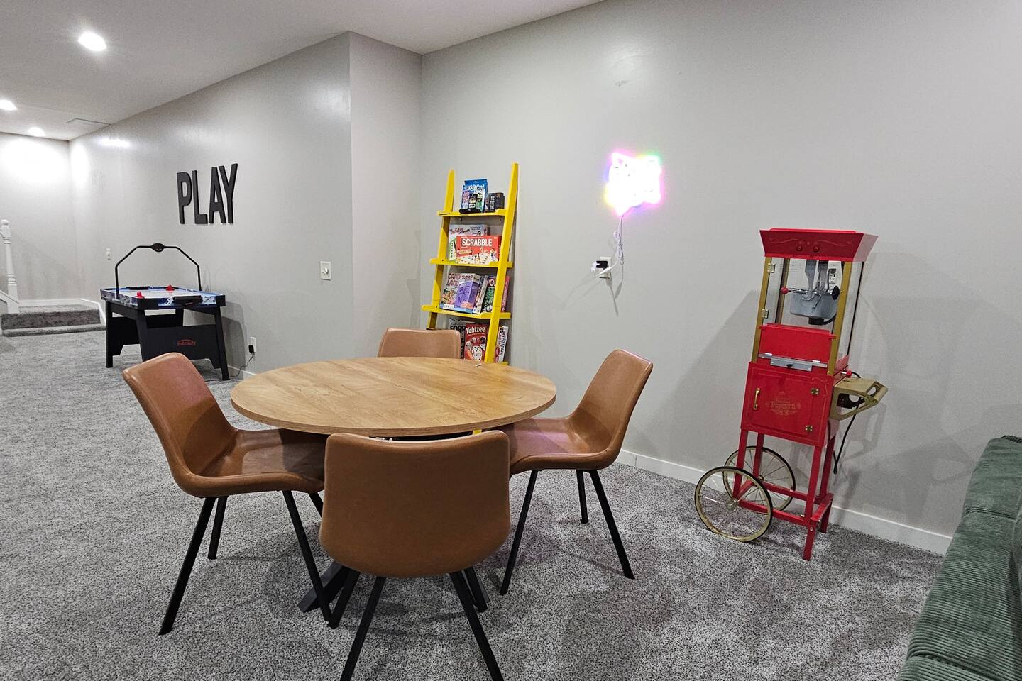 As a Superhost, we’re proud of hosting over 5 years and earning over 300 reviews from happy guests. We’re excited to offer you and your crew an unforgettable 5-star stay at The Playhouse, our newest listing–a stunning, 4-bedroom, 3-bath, 2,500 sq ft. luxury home with a heated pool. ~PERFECT LOCATION, EASY ACCESS~ ★ Quick access to highways, hospitals, shopping, restaurants, and Granite Peak Ski Area ★ Peaceful neighborhood with everything you need just minutes away ~YOUR PRIVATE BACKYARD OASIS~ ★ Stunning seasonal heated pool with 9-foot deep end and ambient lighting ★ Our private pool is typically open from Memorial Day to Labor Day (weather permitting) ★ Want the water extra cozy? A pool heating fee applies for heated access during your stay. ★ Lounge chairs, outdoor furniture and cornhole in a fully fenced backyard ★ Gas grill for your gourmet BBQ ★ Perfect for morning relaxation, sunset swims, and evening gatherings ~MAIN FLOOR: HEART OF THE HOME~ ★ Open living room featuring flush sofa and 2 armchairs, a 55” smart TV for streaming Netflix & more, and cozy gas fireplace ★ Fully equipped chef's kitchen with a coffee bar, perfect for cooking, relaxing, and entertaining ★ Dining room with seating for 8 & kitchen island with additional seating for 3 ★ Primary bedroom with a full bathroom suite a King bed, 55” smart TV, dresser, nightstands, darkening curtains, luggage rack, safe, and attached full bath ★ Queen bedroom with nightstand, luggage rack, and darkening curtains ★ Double Queen bedroom with a nightstand, desk, luggage rack, and darkening curtains ~LOWER LEVEL: FUN & FLEXIBILITY~ ★ Cozy family room with a flush sofa, a 75” smart TV, a PS5 digital gaming console, 2 handheld controllers, and 2 massage bean bag chairs ★ Spacious game room with a foosball table, an air hockey table, 2 arcade game machines featuring 14 classic games each, a card table for enjoying a selection of 10+ card/board games, poker chips, a Bluetooth karaoke machine, jumbo Jenga and connect four, a nostalgic popcorn machine, and popcorn kits included ★ A private office with a desk and office chair for remote work ★ A full size bathroom with shower/tub combo for convenience ★ Bonus Dream Lounger Theater Room: Features a platform with 2 queen beds to relax and lounge on and a wifi-enabled projector to stream or cast your shows—perfect for cozy movie nights! ~PARKING~ ★ Private driveway that can fit up to 4 cars ★ No street parking during school hours ~ADDITIONAL HIGHLIGHTS FOR A PERFECT STAY~ ★ 1 Gbps high-speed internet ★ Insulated 2-car garage with modern garage door ★ Central air conditioning for year-round comfort ★ Main-level laundry room for added convenience ★ Child friendly amenities including a Pack N Play, booster highchair, infant bathtub, children dinnerware & outlet covers ★ Early check-ins or late check-outs may be available for an additional hourly fee - please feel free to inquire ~VACATIONING WITH PETS~ ★ We welcome up to 2 house-trained dogs of non-aggressive breeds, ages 2 or older, max 75 lbs each (sorry, no cats or any other animals) ★ Pet Rules and Pet Fee apply ★ Contact us for pet approval–Proofs of recent rabies shot and vet-grade flea/tick medications ★ Add the number of pets in your booking request (Under Guests>Scroll down to Pets) so the Pet Fee is properly included in the booking ★ We provide a 28”x42” kennel, dog bowls, doggie blankets, and poop bags for your convenience ~FEES (if applicable)~ ★ When the pool is open during the summer, if you would like the pool heated, there is a $75/day pool heating fee. It must be for the duration of your stay as well as paid at least 72 hours before your scheduled arrival. Contact us with any questions. ★ If you are bringing 1-2 dogs that meet our dog requirements, there is a $100/stay pet fee. If you add your dog(s) to the reservation, the fee will automatically be applied to the reservation. ★ Early check-ins or late check-outs may be available for an additional $25/hour fee. Please inquire for availability. ~IMPORTANT~ Guests will promptly receive the Rental Agreement upon booking submission. To receive property access code, guests must e-sign the rental agreement and provide a copy of photo ID within 2 days of booking. Guests can cancel booking within 48 hours for a full refund if the agreement doesn't work for them. ~A NOTE FROM YOUR HOST~ At The Playhouse, we take pride in fast communication, quality amenities, and making sure every guest feels at home. Have a special request? Just ask—we love making stays extra special. Sincerely, Blia - Your Host ~BOOK YOUR STAY TODAY!~ Whether you're at the Playhouse to unwind, entertain, or explore Wausau, this home has everything you need for a luxurious and memorable stay. Book your perfect getaway now!